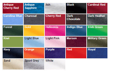 Slogans: All available, See list on Sayings Options Page. Option for printing on front or back.Choose Your Color of Print